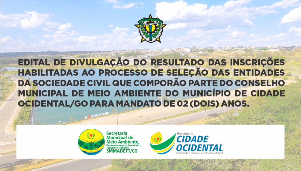 EDITAL DE DIVULGAÇÃO DO RESULTADO DAS INSCRIÇÕES HABILITADAS AO PROCESSO DE SELEÇÃO DAS ENTIDADES DA SOCIEDADE CIVIL QUE COMPORÃO PARTE DO CONSELHO MUNICIPAL DE MEIO AMBIENTE DO MUNICÍPIO DE CIDADE OCIDENTAL/GO PARA MANDATO DE 02 (DOIS) ANOS