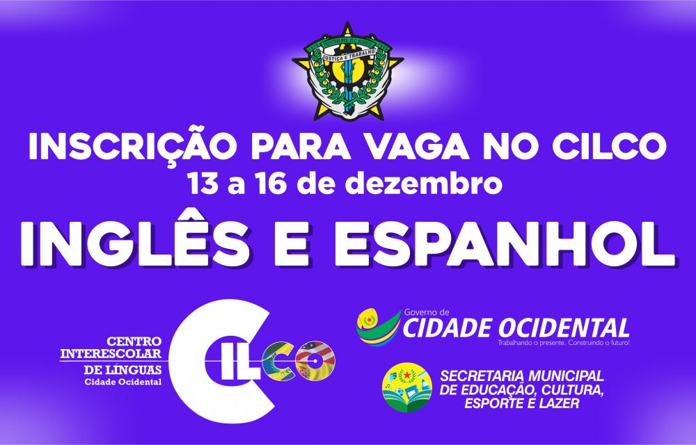 Estão aberta as inscrições para o curso de INGLÊS E ESPANHOL para o CILCO - CENTRO INTERESCOLAR DE LINGUAS DE CIDADE OCIDENTAL