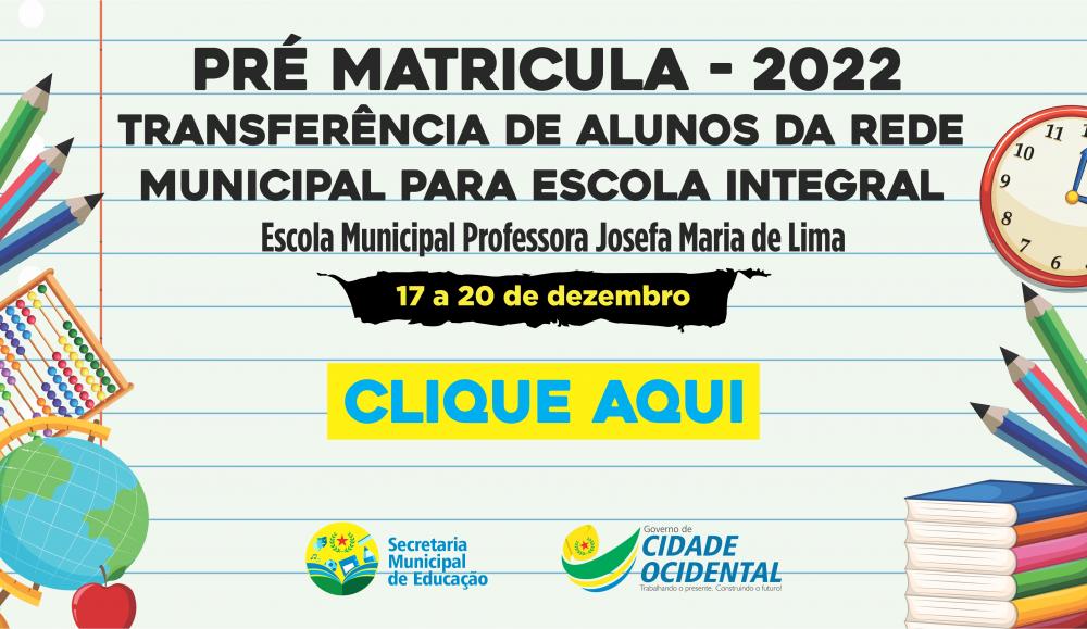 Aberto o período de inscrição para Transferência de alunos da rede municipal para a Escola Integral: Escola Municipal Professora Josefa Maria de Lima.
