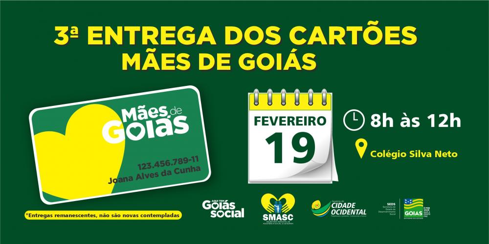 A Prefeitura Municipal estará realizando a entrega dos Cartões Mães de Goiás juntamente com o Governo do Estado de Goiás, no dia 19 de fevereiro.